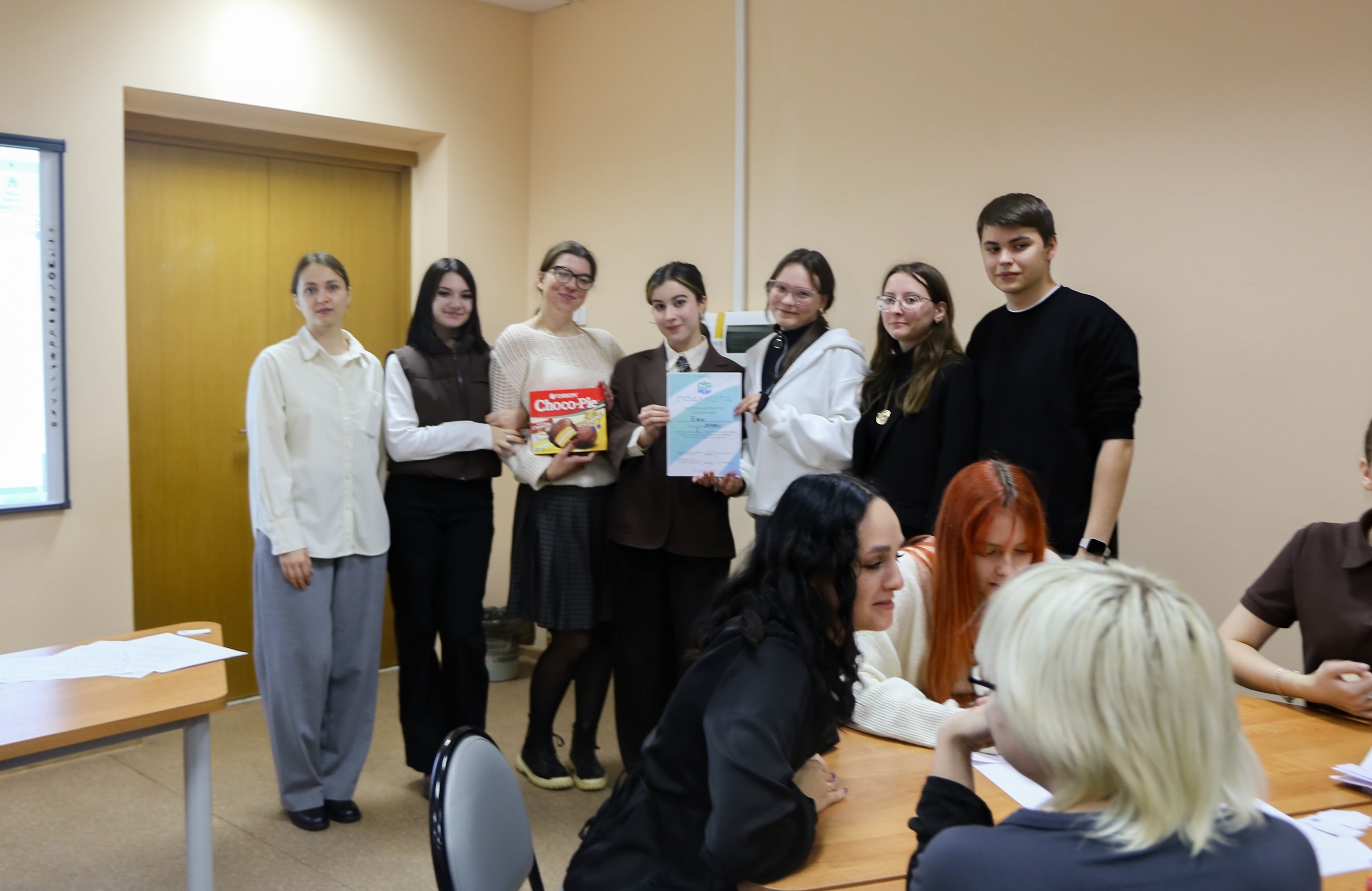 Все победители получили кубки, грамоты и сладкие призы. Бонусную упаковку традиционных чокопаек подарили команде, которая упорно за них боролась, видела цель и не видела препятствий на своем пути — команде группы 25ИПО1 «За чокопаем».