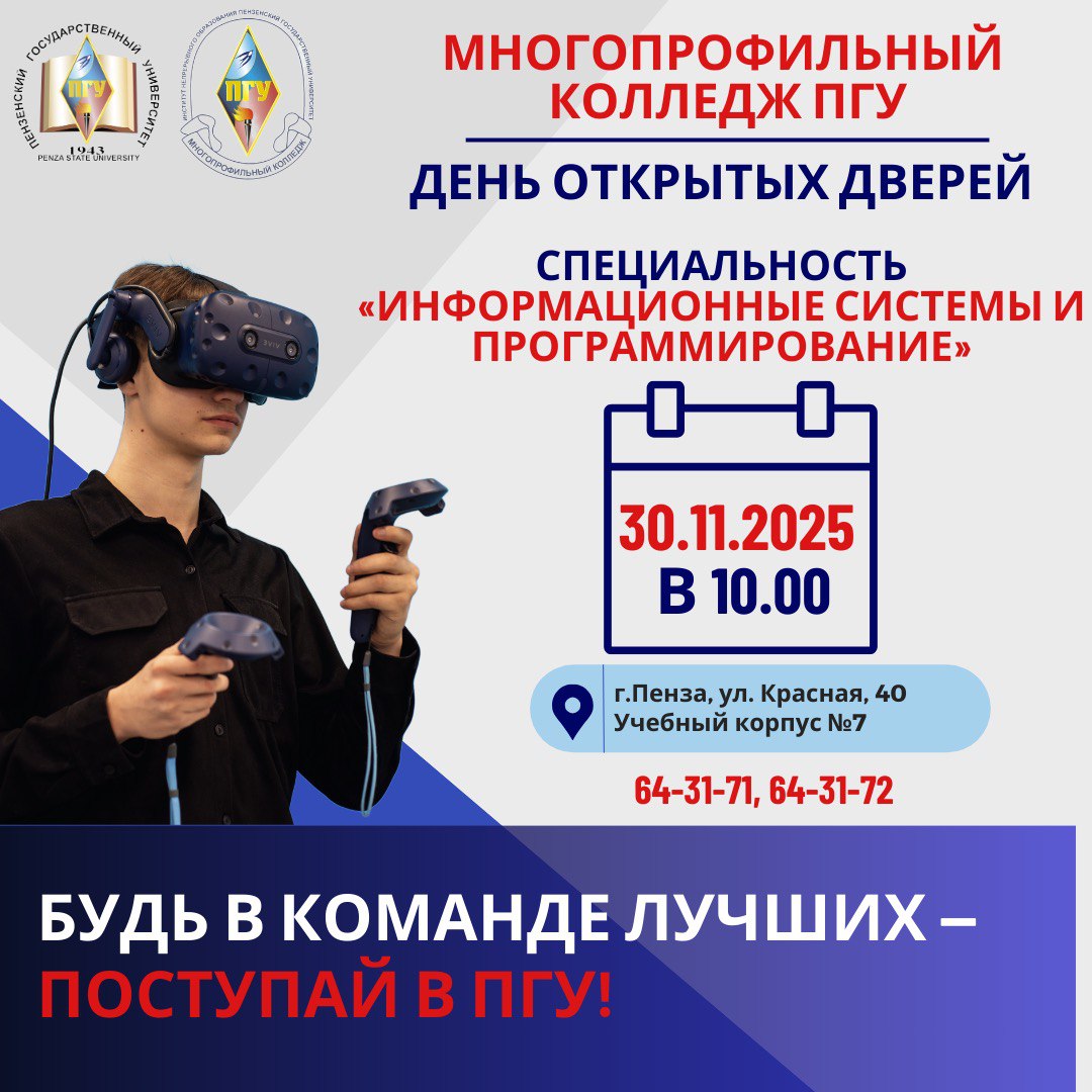 25.11.2025 10:42 В Многопрофильном колледже ПГУ пройдет День открытых дверей специальности «Информационные системы и программирование»