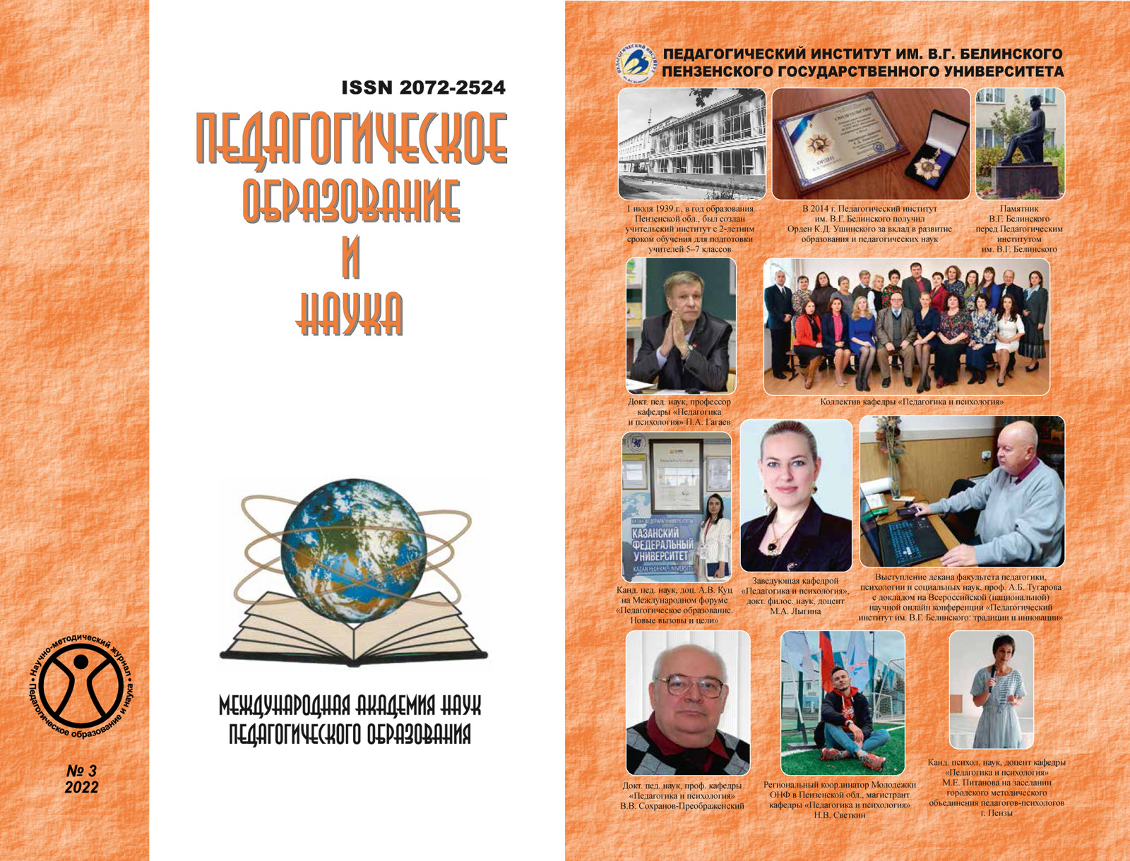Цикл статей в рубрике «Регион крупным планом: Пенза» вошел в очередной выпуск журнала «Педагогическое образование и наука» Международной академии наук педагогического образования, входящего в перечень ВАК.