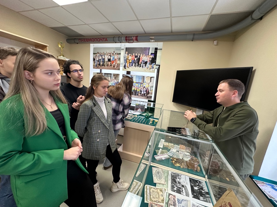 В Музее Сберегательного дела студенты погрузились в историю банка, узнали о том, как менялись технологии обслуживания клиентов. Познакомились с устройствами, которые использовались при совершении платежей, и увидели, каким образом Сбер всегда идет в ногу со временем.