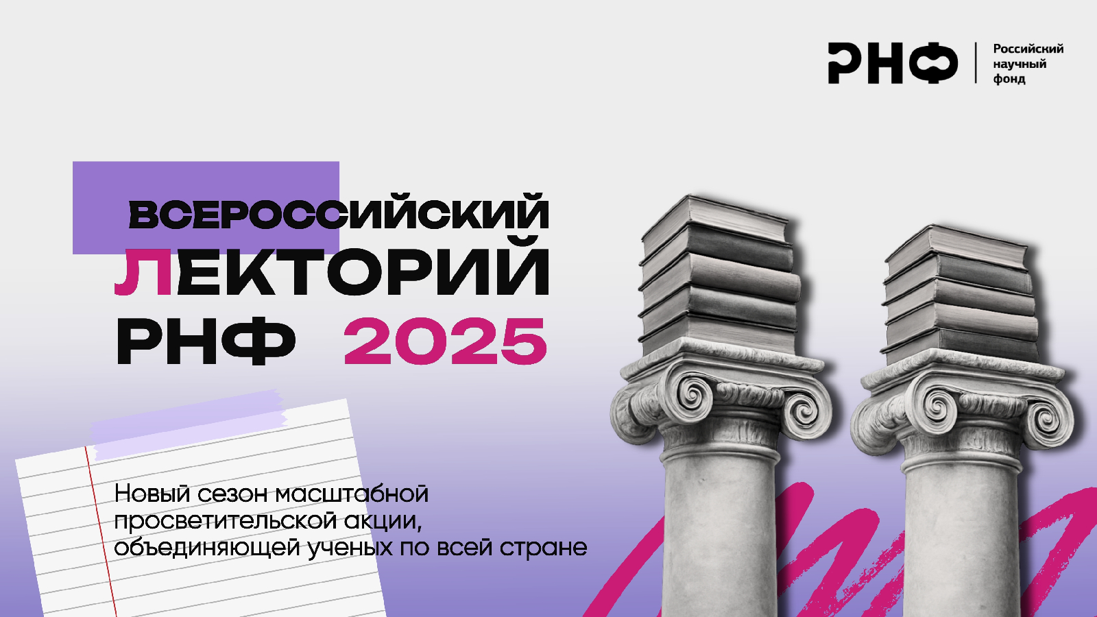 В 2025 году Российский научный фонд вновь запускает акцию, которая объединит ученых из разных уголков страны. Всероссийский лекторий РНФ пройдет с 20 по 24 октября и станет одним из ключевых мероприятий Российского научного фонда. Это уникальная возможность для грантополучателей поделиться результатами своих исследований, рассказать о передовых научных разработках и их практическом потенциале. Масштабная акция стартует в сентябре. Ученые со всей страны могут подать заявку на участие уже сейчас, заполнив форму.